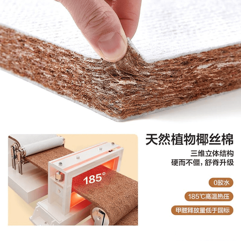 使用90%高纯度的植物弹簧和椰棕纤维,弹簧线mm◆•,椰棕纤维强韧有弹性,硬中有软,完美贴合人体曲线,有效分散压力,保护脊椎健康。